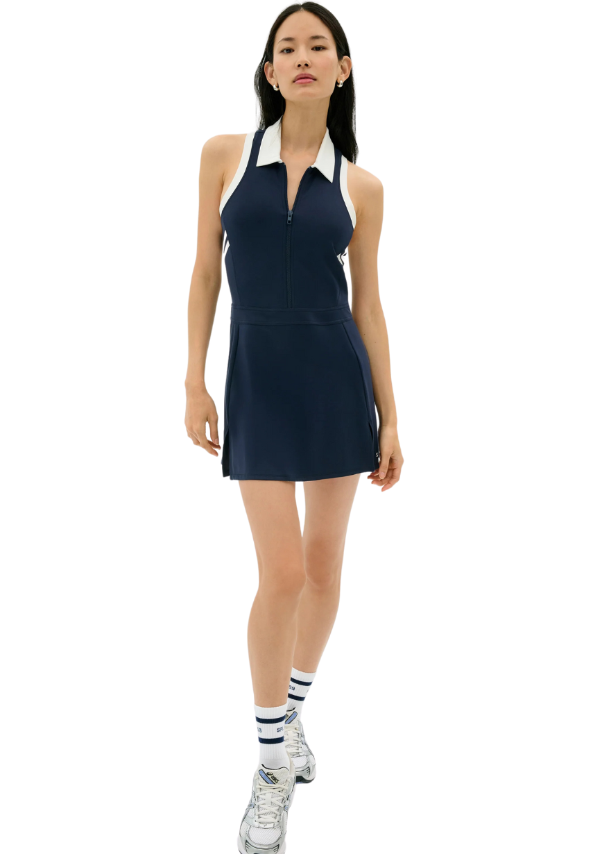 Another court sport dress for your collection, the Austin Dress is the perfect piece for your next tennis/pickleball match or a fun summer dress for any activity. Super soft Rigor fabric and built-in shorts. Zip down polo neckline, racerback, and side slits.
