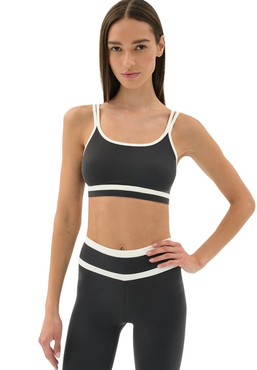 Our Eva Rigor bra is designed to keep you comfortable and confident through every rep and routine. Double straps in white and graphite provide nice contrast color details for powerful look.