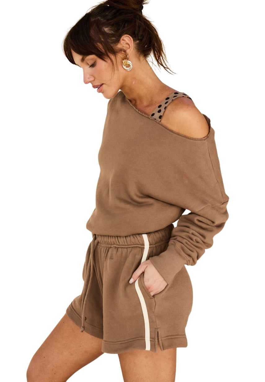Meet the Rugby Short! This striped athleisure short is made in a cozy, french terry fabric and complete with a drawcord and side pockets.