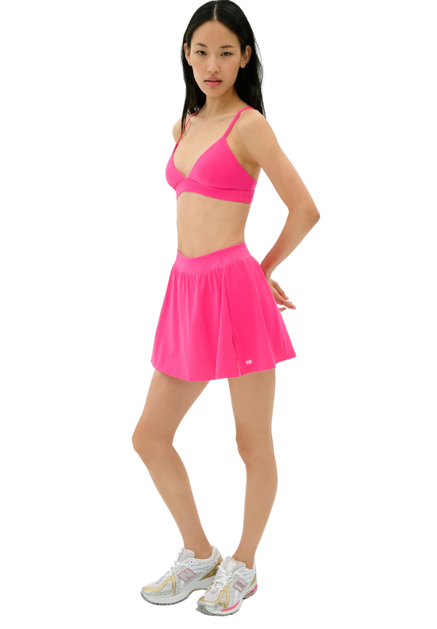 This tennis inspired skort is ready for your next workout or match. Our high-performance Rigor fabric is super soft with wicking and quick dry super powers and is now available in this summer pink in skort form.